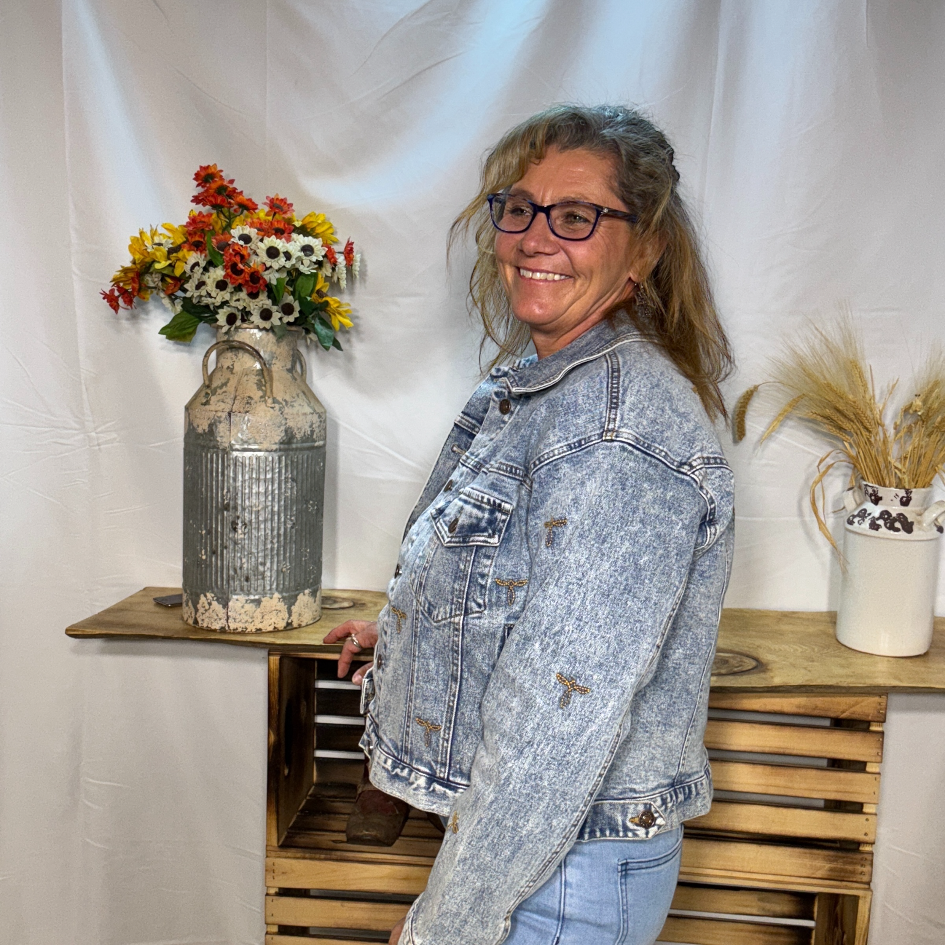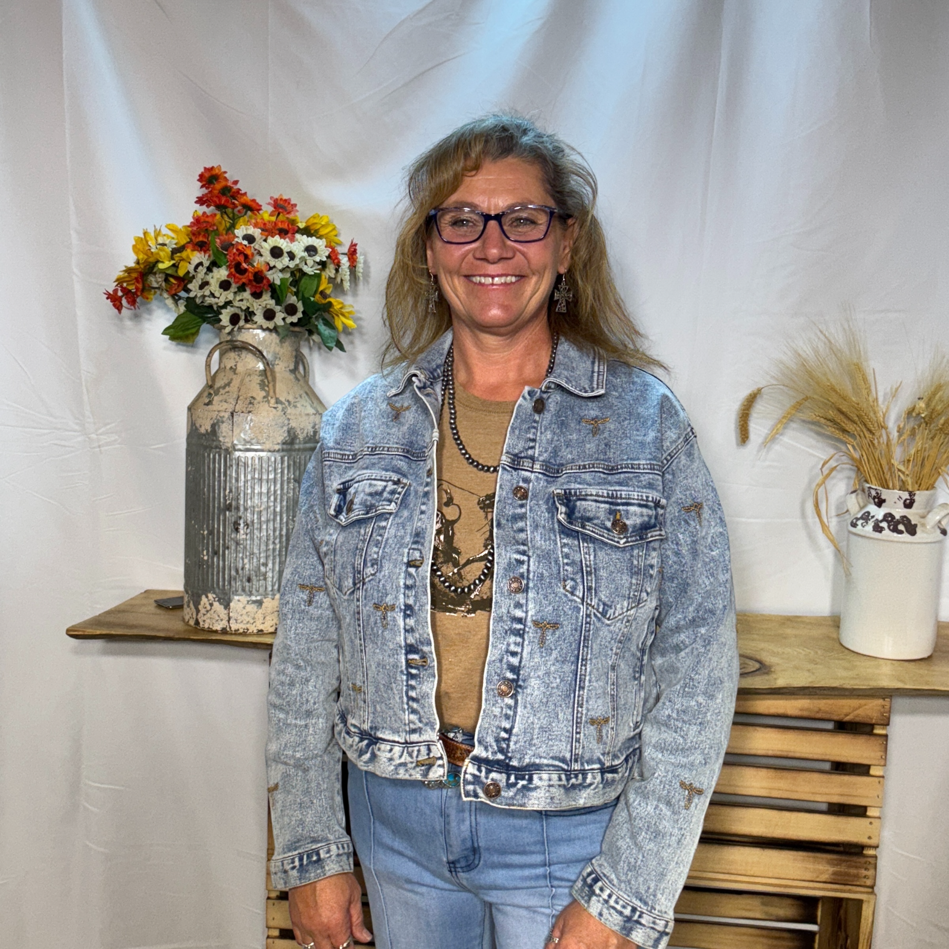 This mineral-washed jean jacket blends a vintage fade with modern Western flair, giving you that worn-in feel right from the first wear. Perfectly structured yet easy to layer, it’s made for everything from rodeo nights to small-town strolls.